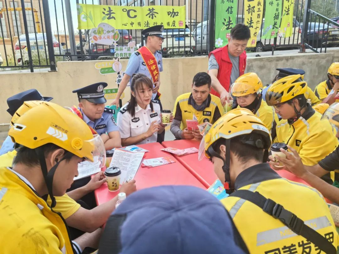 活动现场,高铁司法所工作人员正将“法℃茶咖”的招牌饮品——“律”茶、“司”滑拿铁等谐音梗“法治”饮品送到每一位外卖员手中,为外卖小哥搭建集法律咨询、纠纷调解、法律服务于一体的服务平台,有效提升外卖员的法治意识和依法处理纠纷的意识。