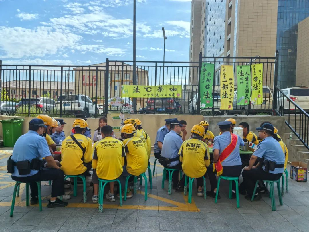 8月16日,乌鲁木齐经开区(头屯河区)司法局高铁司法所携手经开区(头屯河区)公安分局法制大队、高铁新区派出所,将“法℃茶咖”普法饮品开到了经开万达美团骑手驿站,为外卖小哥送上一份特别的“外卖”,帮助提升外卖行业劳动者的法律意识和依法维权能力。