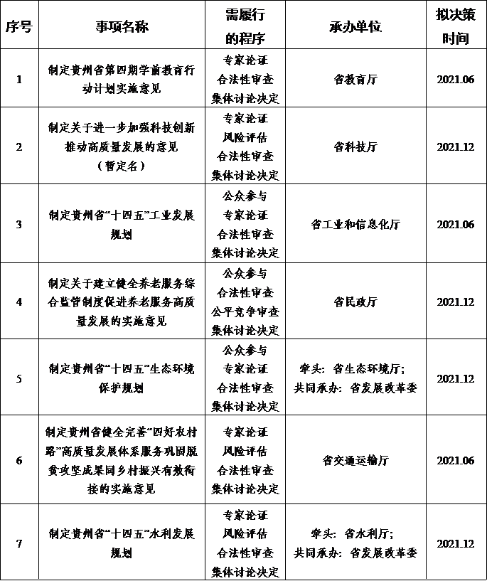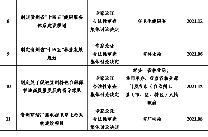 贵州省政府公布2021年度11项重大行政决策事项(附名单)