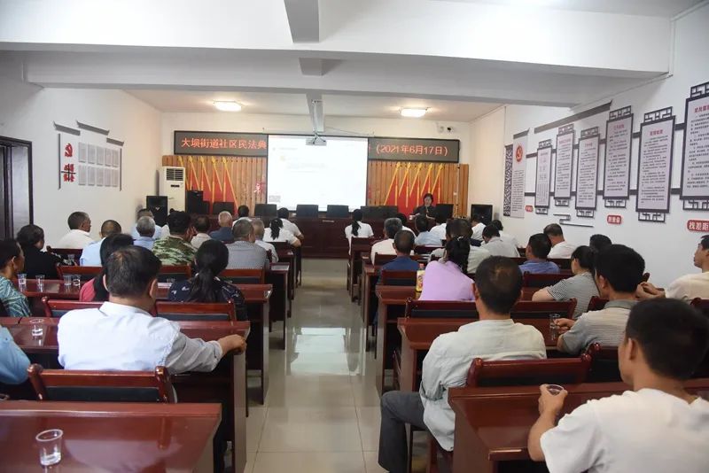启动仪式结束后,桂艳律师分别到火石镇富兴社区、大坝镇街道社区进行民法典宣讲。她从民法典的核心要义、民法典对社会问题的回应、重点法律条文解读、交流互动四个方面,结合案例生动详细讲解《人格权编》《婚姻家庭编》等具体内容,系统阐释了民法典的系列新规定新概念新精神,向基层普法队伍讲清楚了民法典的颁布是中国特色社会主义制度建设、法治建设的重大标志性成果,是推进全面依法治国、推进国家治理体系和治理能力现代化的重要法律制度,是坚持和完善社会主义基本经济制度、推动经济高质量法治的坚强法律保障,是坚持以人民为中心的发展思想,实现人民对美好生活向往的重大立法举措。