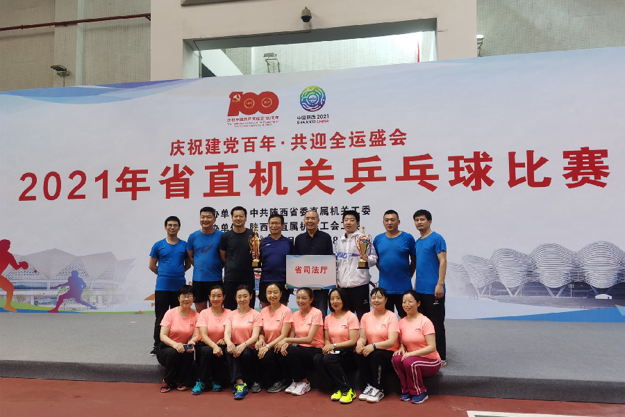 6月17日,陕西省司法厅积极参加了由省直机关工委组织的“庆祝建党百年·共迎全运盛会”2021年省直机关乒乓球比赛活动。2021年是中国共产党成立100周年,是全党集中开展党史学习教育年,是第十四届全运会在陕西召开之年,省司法厅党员干警以司法行政人的良好精神风貌和敢打必胜的实际行动,庆祝建党100周年!