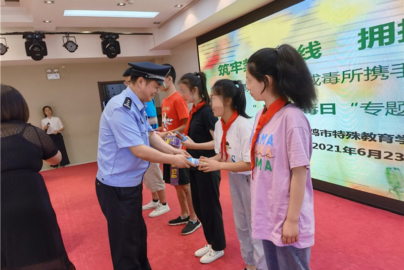 为进一步加强毒品知识宣传力度,提高青少年对新型毒品的防范意识和抵御能力,第34个国际禁毒日来临之际,6月23日,陕西省宝鸡强制隔离戒毒所组织干警来到宝鸡市特殊教育学校开展禁毒戒毒法治宣传教育活动。