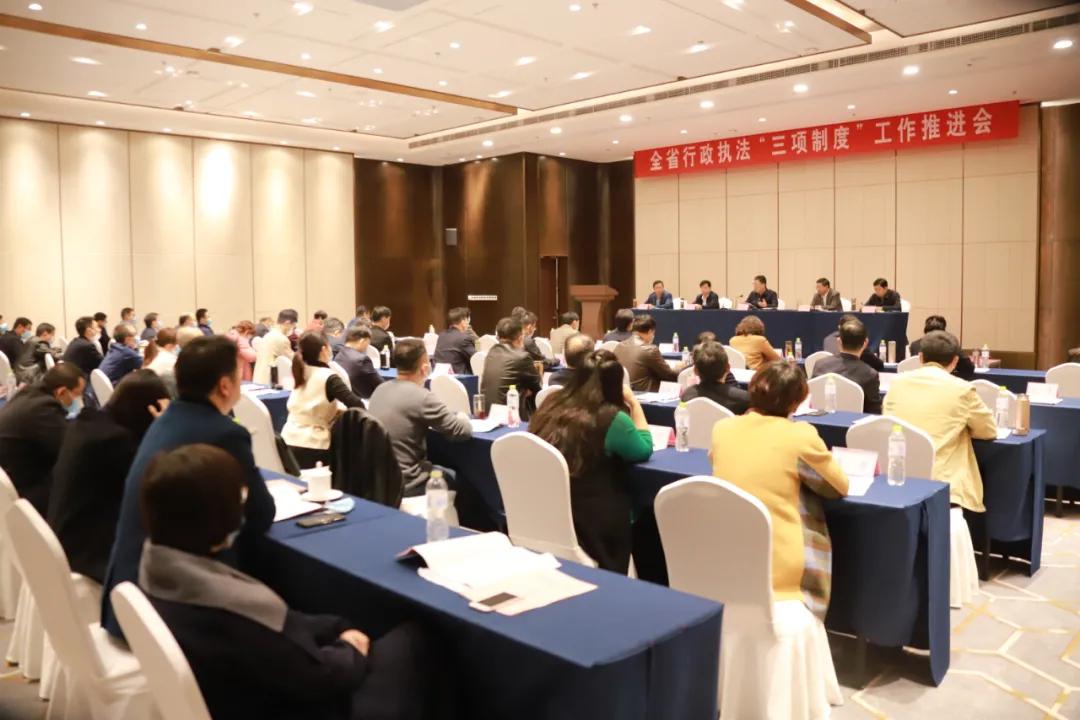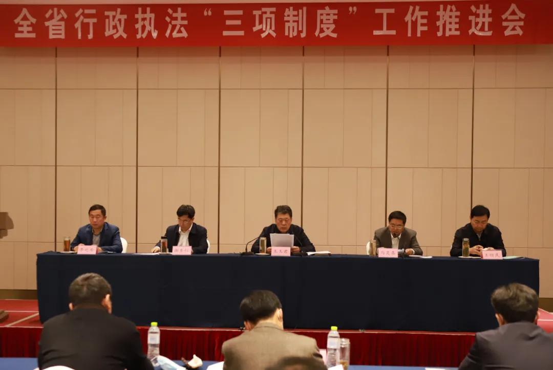 11月18日,全省行政执法“三项制度”工作推进会在济南召开,会议深入贯彻落实习近平总书记在中央全面依法治国工作会议上的重要讲话精神,全面总结全省行政执法“三项制度”推进情况,安排部署下一阶段工作,推动 “三项制度”深入落实。省司法厅党委书记、厅长王玉君出席会议并讲话,省司法厅一级巡视员马灵喜主持会议,济南市副市长、市公安局局长吴德生到会致辞。各市司法局分管副局长、行政执法监督科(处)长及部分县(市、区)司法局长参加会议。