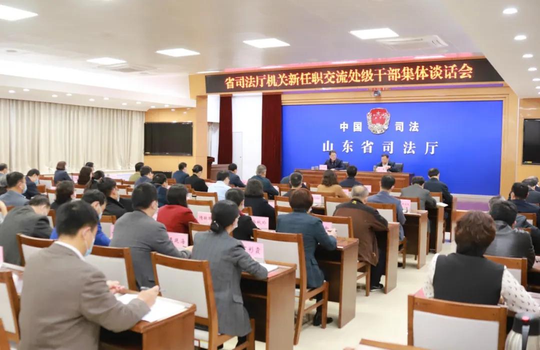11月18日下午,省司法厅机关召开新任职交流处级干部集体谈话会,厅党委书记、厅长王玉君出席会议并讲话,厅党委委员、政治部主任刘淼主持会议并宣布干部任免决定。