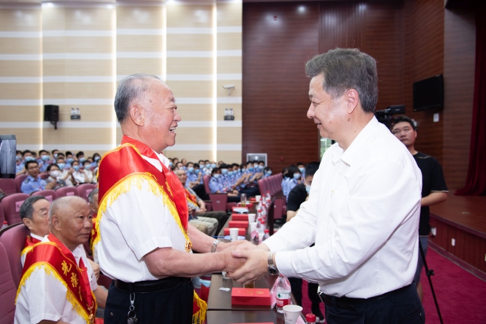 会上,厅党委委员、政治部主任李军宣读了厅党委关于表彰厅直系统先进基层党组织和优秀共产党员、优秀党务工作者的决定和关于2020年度理论学习中心组学习成果评选结果的通报,姜明厅长为老党员代表颁发了“光荣在党50年”纪念章,厅级领导同志为“两优一先”代表和理论学习中心组学习成果获奖代表颁发了奖牌和荣誉证书。