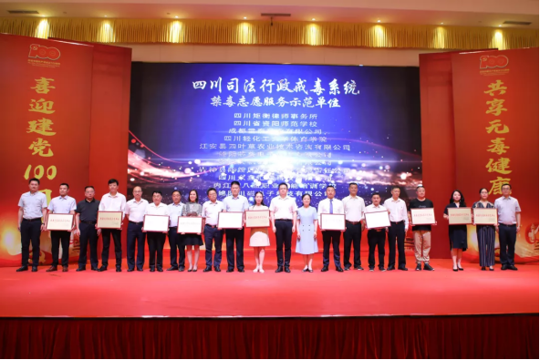6月23日,在第34个“6·26”国际禁毒日到来之际,四川省戒毒管理局牵手四川省就业管理局、共青团四川省委、中国工商银行四川省分行、资阳市政法委,在资阳举办“喜迎建党100周年共享无毒健康人生”2021年“6·26”国际禁毒日教育宣传活动。四川省政法队伍教育整顿第十八指导组副组长张珂,省司法厅党委委员、省戒毒管理局党委书记、局长安家爱、共青团四川省委副书记唐经天,重庆市戒毒管理局党委委员、副局长肖初海,资阳市委常委、政法委书记杜德清,四川省司法厅二级巡视员李灿,中国工商银行四川省分行党委委员、副行长周玥,资阳市人民检察院检察长吕皓,以及来自省司法厅、省就业管理局、省禁毒办、工商银行四川省分行和资阳市司法局、团市委、应急管理局、临空经济区管委会、卫健委等相关单位领导和高校、企事业单位和新闻媒体等120余人出席活动。
