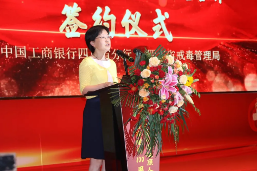 周玥指出,禁毒是全社会共同的责任,工商银行四川省分行作为省内金融服务企业,将积极履行禁毒职责和义务,发挥银行渠道优势,为禁毒人民战争助力,协助四川司法行政戒毒系统全面拓宽禁毒宣传教育覆盖面,加强禁毒宣传教育,弘扬和传递“禁绝毒品、人人有责”的社会正能量,倡导和呼吁广大干部群众积极行动起来,在全社会营造珍爱生命、远离毒品的浓厚氛围,为共同构筑全社会群防群控的禁毒工作格局贡献工行力量。