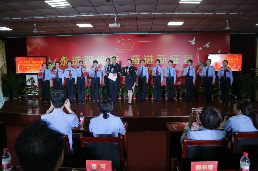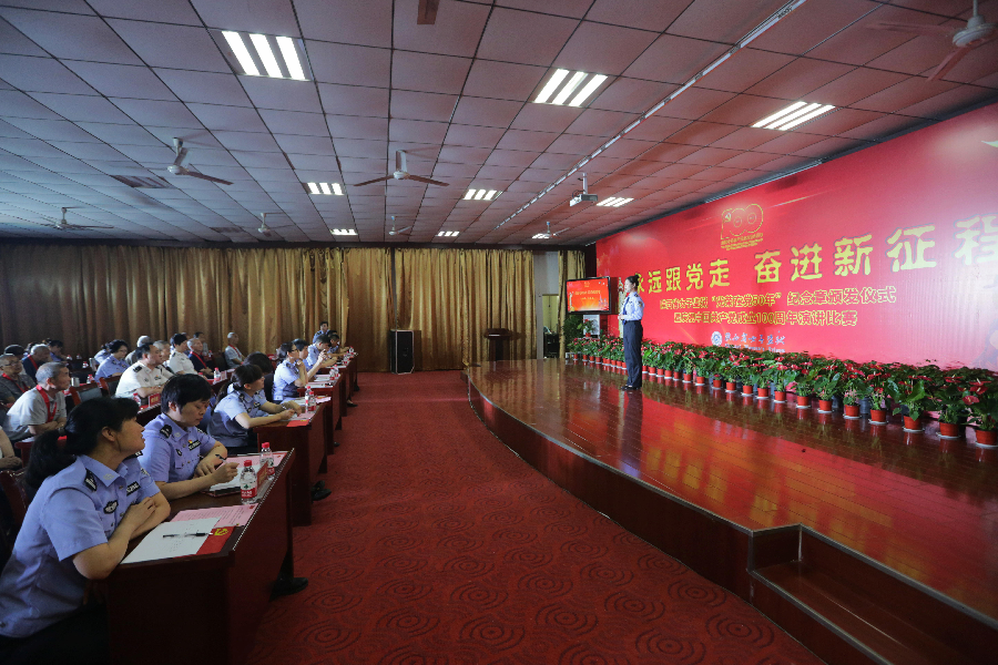 6月25日,陕西省女子监狱举办“光荣在党50年”纪念章颁发仪式暨庆祝中国共产党成立100周年“永远跟党走奋进新征程”主题演讲比赛。监企领导、离退休同志代表,部分科级以上干部及警察参加活动。