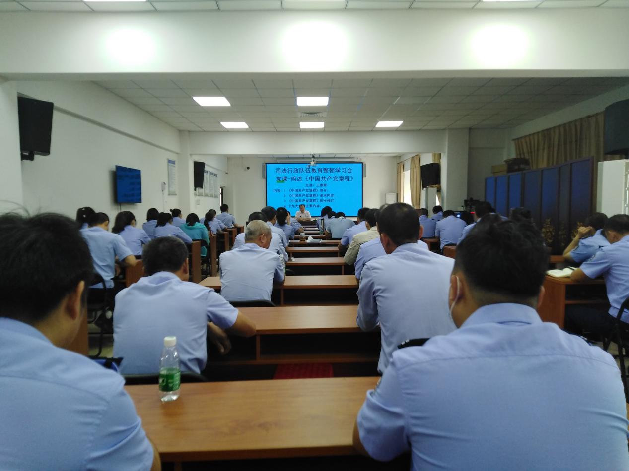 王德章局长围绕贯彻习近平总书记在党史学习教育动员大会上的讲话精神,重点强调党史教育在政法队伍教育整顿中的重要作用,学习党史要与学习新中国史、改革开放史、社会主义发展史相贯通,从《中国共产党章程》的制定背景、历史上19次修订党的纲领、组织机构等多个方面对党章进行生动的阐述,带领司法行政队伍重温党章的诞生历史,汲取信仰力量,引导司法行政队伍学史明理、学史增信、学史崇德、学史力行,夯实忠诚纯洁可靠的思想根基,锻造一支清正廉洁、作风过硬的高素质司法行政队伍。