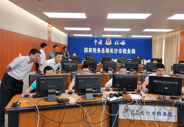 7月5日上午,省司法厅普法与依法治理处负责人一行赴湖南省税务局和长沙市税务局了解考试情况,查看考试设备和网络连接,询问税务干部参考情况,安排如法网运维人员提供技术服务。