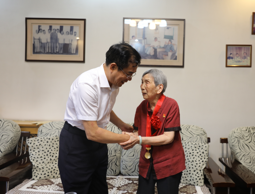 范运田与郑老促膝谈心,仔细询问她的生活和身体健康状况,临别时说道:“我们一定会牢记老一辈历史功绩,学好红色历史,传承好红色基因,沿着前辈的足迹前行,把红色精神传下去。”