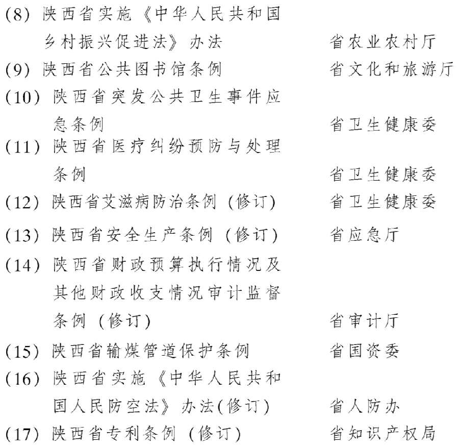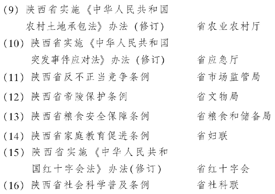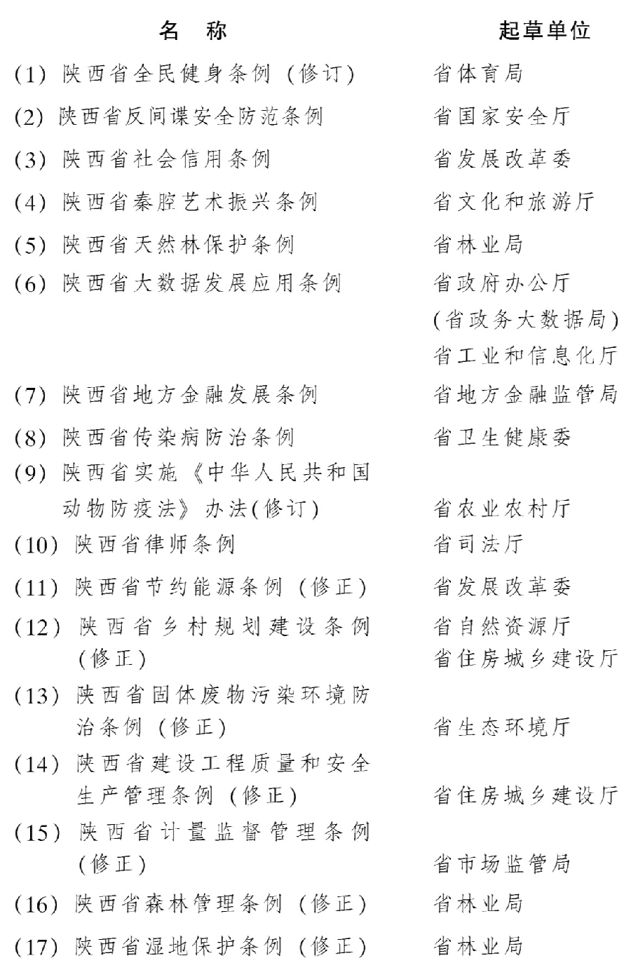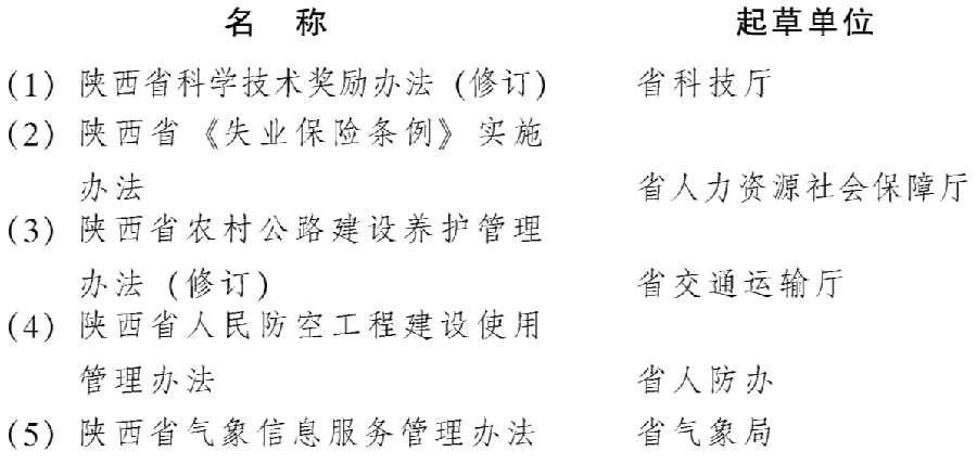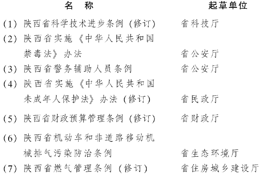 根据《中华人民共和国立法法》《规章制定程序条例》《陕西省地方立法条例》等规定,结合我省实际,现对省政府2021年度立法工作安排如下: