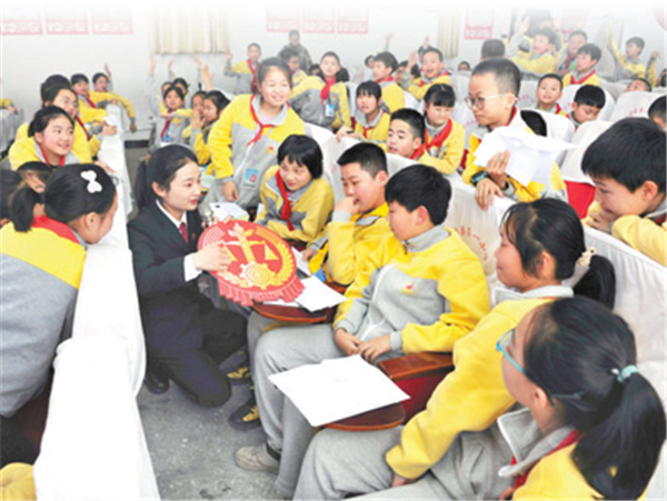 安徽省淮南市普法志愿者向群众讲解民法典。陈 彬摄(人民视觉)