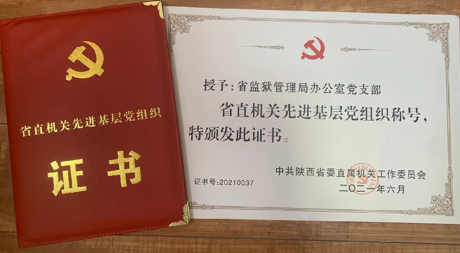 陕西省监狱管理局办公室党支部荣获省直机关“先进基层党支部”荣誉称号