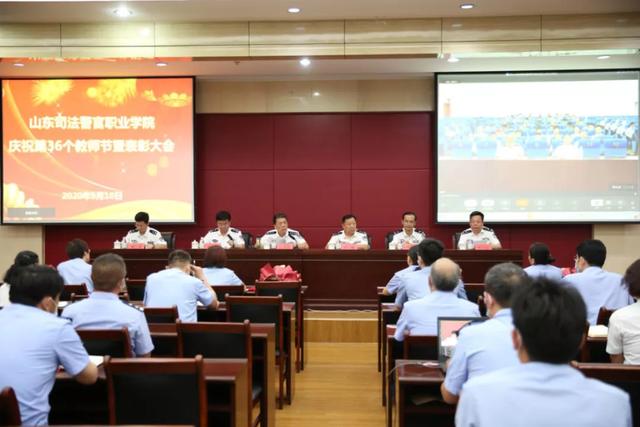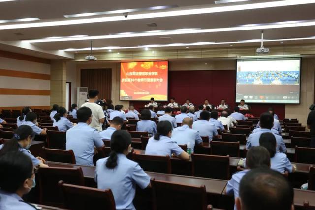 9月10日,山东司法警官职业学院举行庆祝第36个教师节暨表彰大会,省司法厅党委书记、厅长、省监狱局第一政委王玉君,厅党委委员、政治部(警务部)主任刘淼出席。