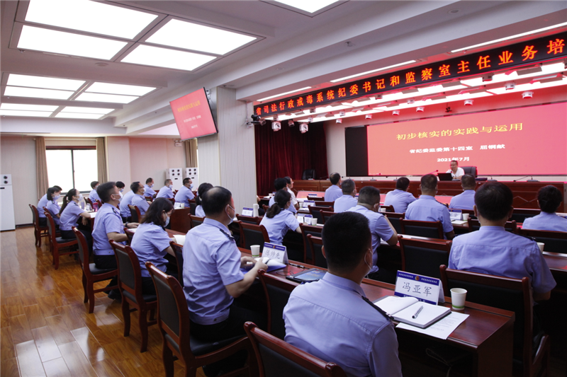 局党委委员、纪委书记贺文娟主持汇报交流会并作了总结讲话;培训班邀请省纪委监委第十四审查调查室屈铜献、省纪委监委案件监督管理室黄旭日两名同志分别围绕“初步核实的实践与运用”“案件监督管理系统操作介绍与易错点解析”两个纪检监察工作重难点课题为参训学员作了专题辅导讲座,系统学习了十九届中央纪委五次全会精神和省纪委十三届五次全会精神;13个强制隔离戒毒所的纪委书记作了汇报交流。