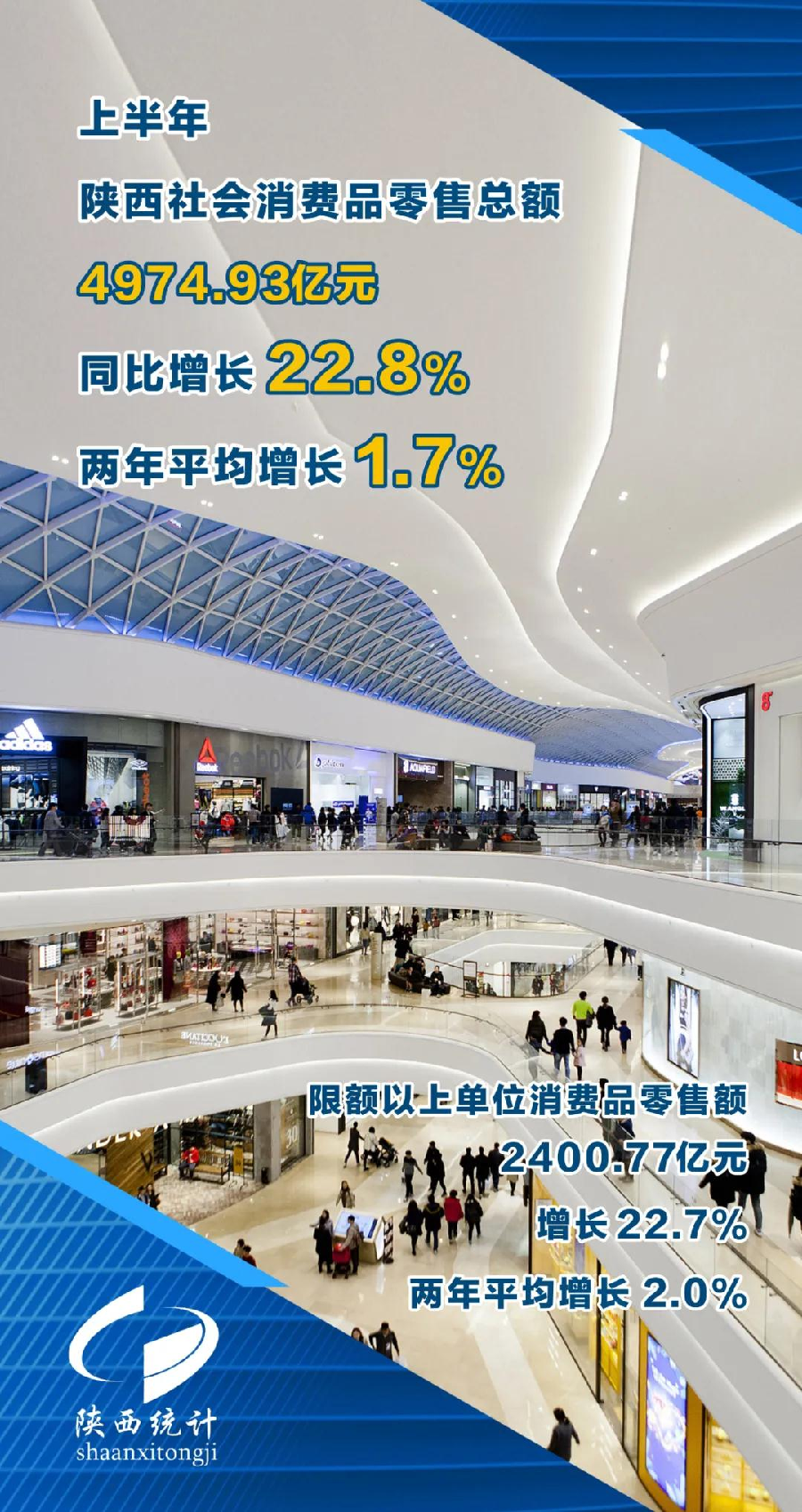 上半年,全省实现社会消费品零售总额4974.93亿元,同比增长22.8%,两年平均增长1.7%,低于2019年上半年增速5.9个百分点。其中,限额以上单位消费品零售额2400.77亿元,增长22.7%,两年平均增长2.0%。
