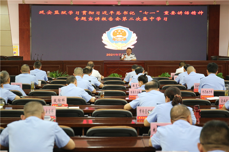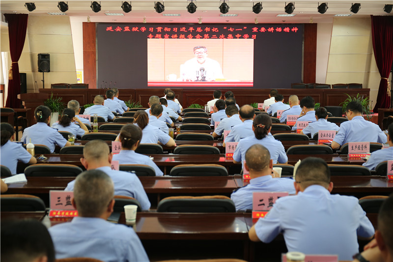 7月19日,陕西省延安监狱组织习近平总书记“七一”重要讲话精神第二场专题学习,集体聆听专题宣讲报告会。监狱党委书记、监狱长出席会议并讲话,监狱非执勤领导班子成员,各部门主要负责同志,机关全体干警职工等90余人参加。
