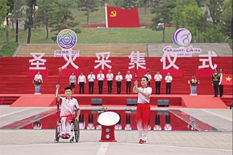 “全民全运,同心同行”。7月17日,中华人民共和国第十四届运动会、中华人民共和国第十一届残疾人运动会暨第八届特殊奥林匹克运动会圣火采集仪式在延安市宝塔山星火广场举行。
