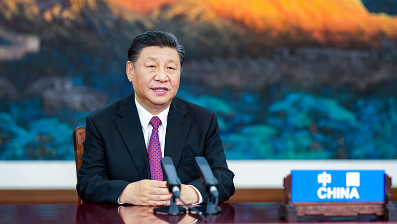 7月16日晚,国家主席习近平应邀在北京以视频方式出席亚太经合组织领导人非正式会议并发表讲话。新华社记者李学仁摄