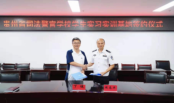 会后,省司法警校党委书记、校长丁健和省一所党委书记、所长周志平签订贵州省司法警官学校学生实习实训基地协议。