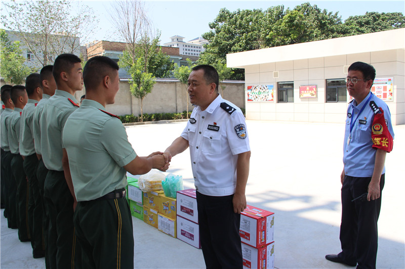 所党委副书记、政委李宏祥,所党委委员、副所长谢春桂前往省武警总队渭南支队执勤一大队渭南中队慰问,向驻地武警官兵送去了防暑降温物品,实地参观了部队营房、训练基地和党建活动室。并向长期为保家卫国、保护人民群众生命财产安全的武警官兵们送上了衷心的祝福和节日的问候,希望两个友好单位一如既往搭建军警友谊桥梁,共同维护辖区安全稳定,为社会和谐做出新的贡献。