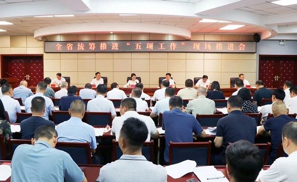 近日,省司法厅在酒泉召开全省统筹推进“五项工作”现场推进会,深入学习贯彻习近平总书记重要指示重要批示精神,全面落实司法部和省委、省政府部署要求,对全省统筹推进“五项工作”进行总结,进一步交流经验、查找不足,鼓励先进、鞭策后进,再压责任、再鼓干劲,不断推进具有甘肃特色的“五项工作”再上新台阶。司法部人民参与和促进法治局局长杜亚玲,省委依法治省办副主任、省司法厅党委书记、厅长谢又生出席会议并讲话。酒泉市委常委、市委政法委书记徐志强出席会议并致辞。