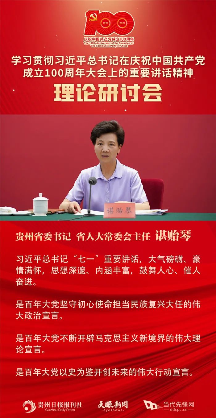 这场研讨会,谌贻琴介绍了贵州如何贯彻习近平总书记“七一”重要讲话精神