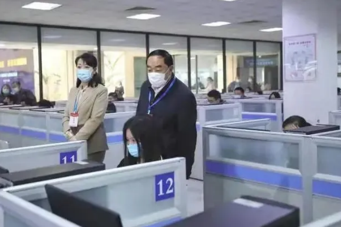 10月16日,2021年国家统一法律职业资格考试开考。副市长、市国家统一法律职业资格考试联席会议召集人董家禄到天津商业大学考点巡考,听取天津考区整体工作情况汇报,详细查看考务安全管理、疫情防控措施、视频巡考系统演示和考场情况。