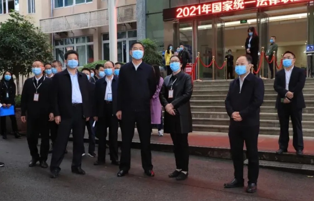 10月16日上午,2021年国家统一法律职业资格考试开考。市政府副市长、市国家统一法律职业资格考试协调委员会主任胡明朗赴渝中考点巡查考试组织实施工作。市政府副秘书长、市国家统一法律职业资格考试协调委员会副主任王余果和市司法局、渝中区有关负责人参加巡考。?