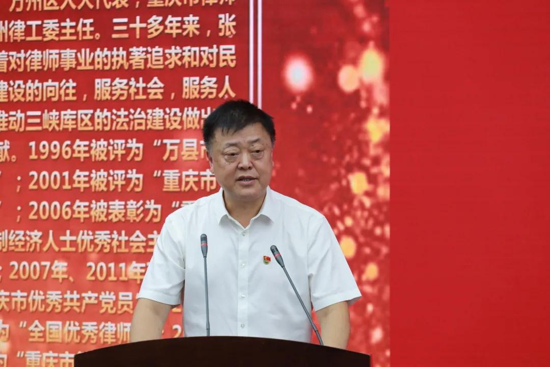 ▲ 重庆渝万律师事务所主任张兴安讲述积极投身三峡库区建设、用法律服务群众的事迹。