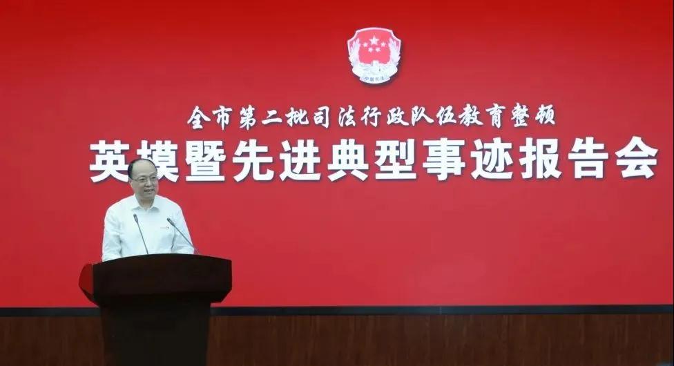 为推动全市第二批司法行政队伍教育整顿学习教育环节走深走实,传承优良传统,弘扬英模精神,9月9日上午,市司法局举办全市司法行政系统英模暨先进典型事迹报告会。市司法局一级巡视员王鹏斌主持会议并讲话。