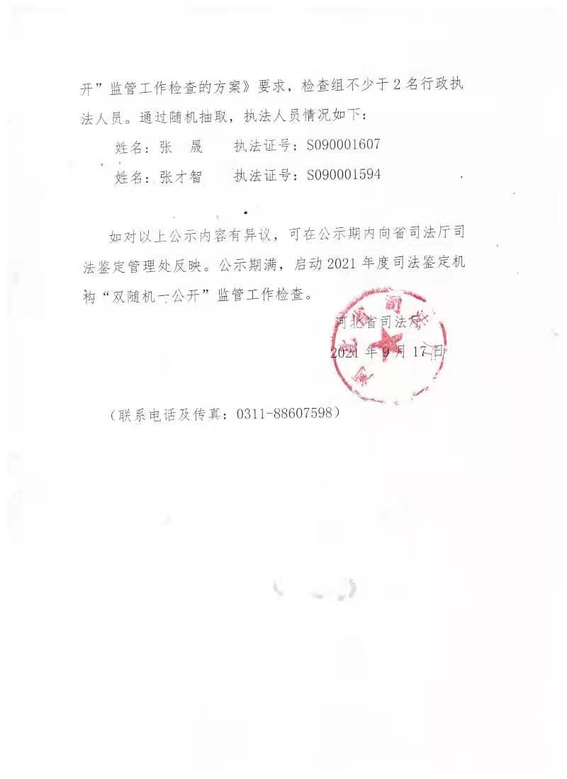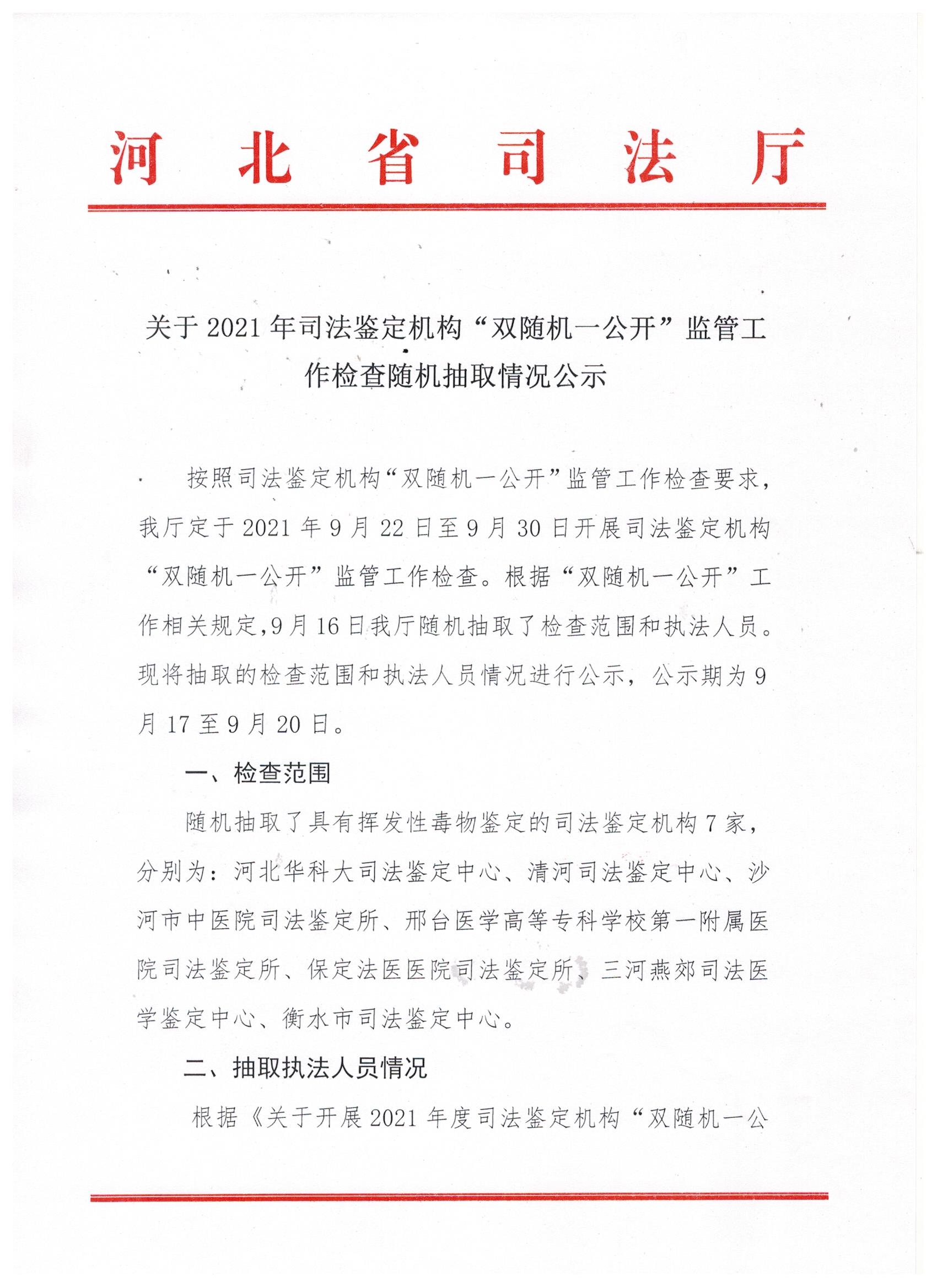 关于2021年司法鉴定机构“双随机一公开”监管工作检查随机抽取情况公示