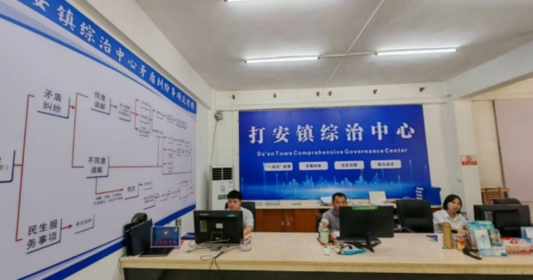 同样是少数民族乡镇的打安镇,该镇综治中心以“便民利民、多元共治”为目标,依托镇便民服务中心构建“一楼受理、二楼化解”的分层治理模式,实现“进一扇门解万般事”,全力把矛盾化解在基层、风险防控在源头。