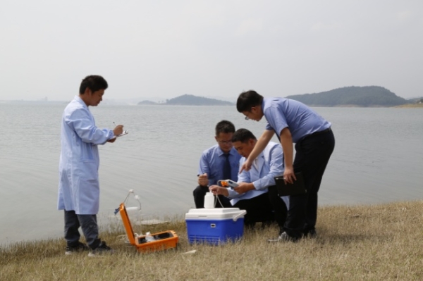 6月30日,湖北省丹江口市检察院检察官会同十堰市生态环境局丹江口分局工作人员一同检测水库水质。
