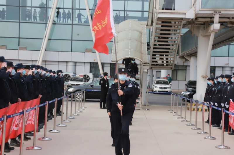 下午4时许,载有援助湖北的省女子监狱30名女干警的包机缓缓降落济南遥墙机场。队员们身着警服,步出机舱,在停机坪上列队集结,欢迎队伍热烈鼓掌。